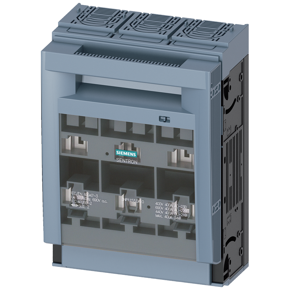 SENTRON, Fuse switch disconnector 3NP1, 3-pole, NH2, 400 A, for assembly and installation on mounting plate, flat terminal, cover level 70 mm