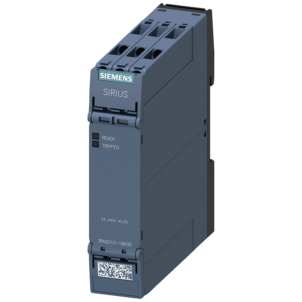 Thermistor motor protection relay Standard evaluation unit 22.5 mm enclosure screw terminal 2 change-over contacts US = 24 V-240 V AC/DC Auto-reset suitable for bimetallic switch 2 LEDs (READY/TRIPPED) galvanic isolation