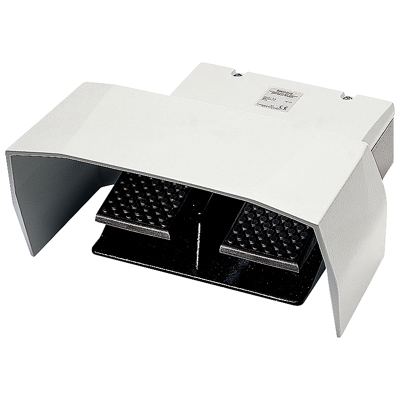 momentary-contact foot switch, 2-pedal with cover, without latching, metal enclosure IP65, cable entry M25 x 1.5 slow-action contacts 1 NO+1 NC per pedal