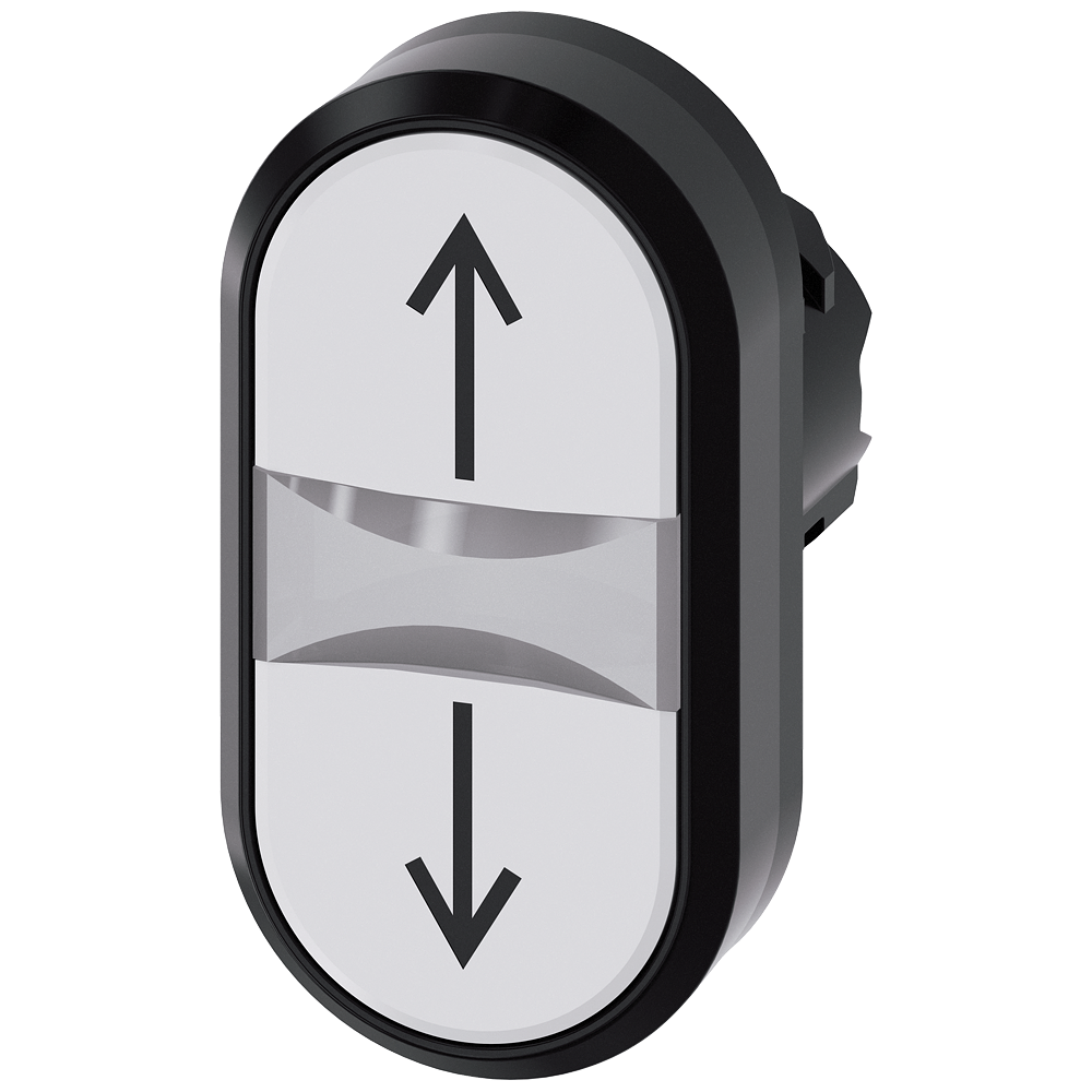 Twin pushbutton, 22 mm, round, plastic, white: arrow pointing up, white: arrow pointing down, pushbuttons, flat