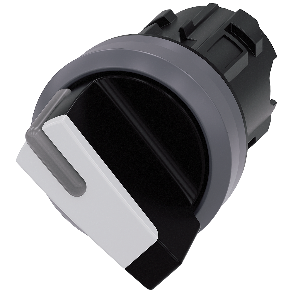 Selector switch, illuminable, 22 mm, round, plastic with metal front ring, white, selector switch, short, 2 switch positions O-I, latching, actuating angle 90°, 10:30h/13:30h