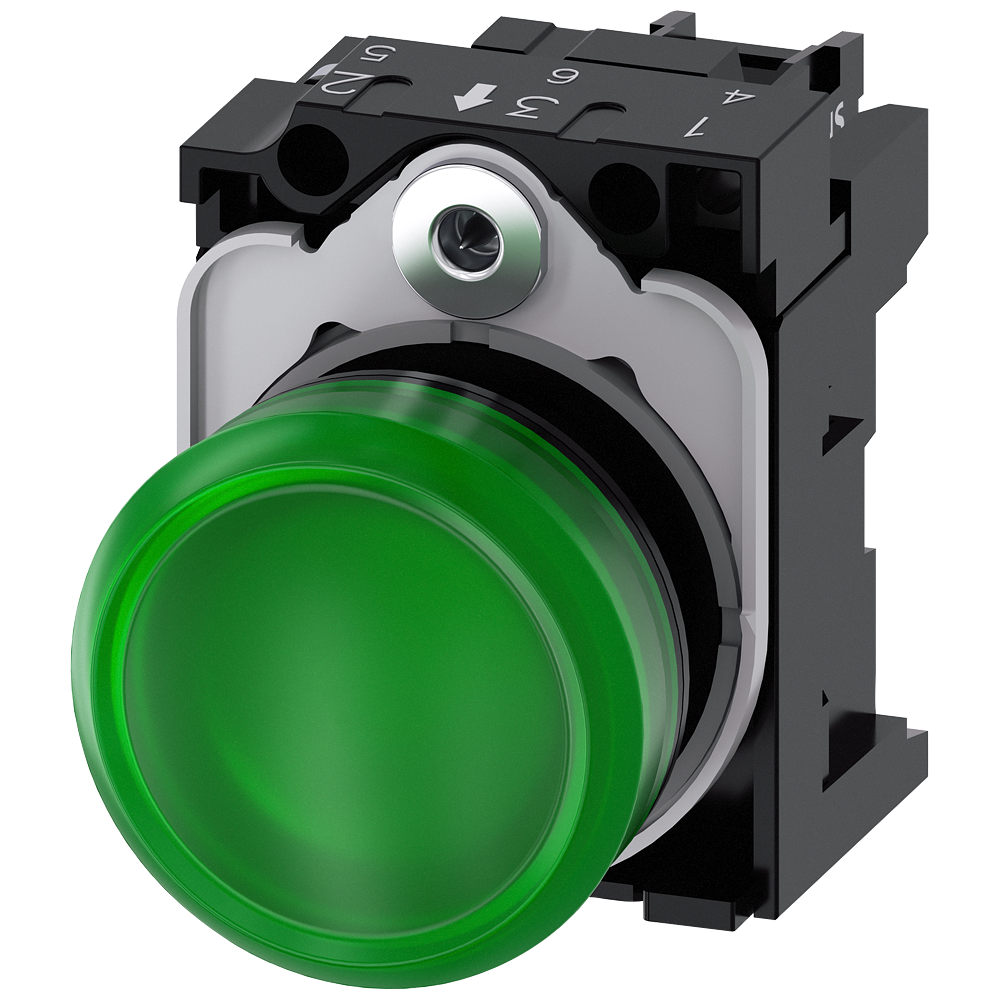 Indicator lights, 22 mm, round, plastic, green, lens, smooth, with holder, LED module, with integrated LED 24 V AC/DC, screw terminal