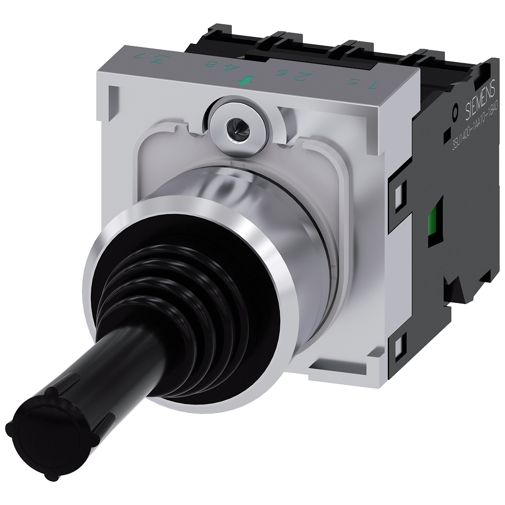 Coordinate switch, 22 mm, round, metal shiny, black, 4 switch positions, momentary contact type, without mechanical interlocking, in O position, with holder, 1 NO, 1 NO, 1 NO, 1 NO, screw terminal,