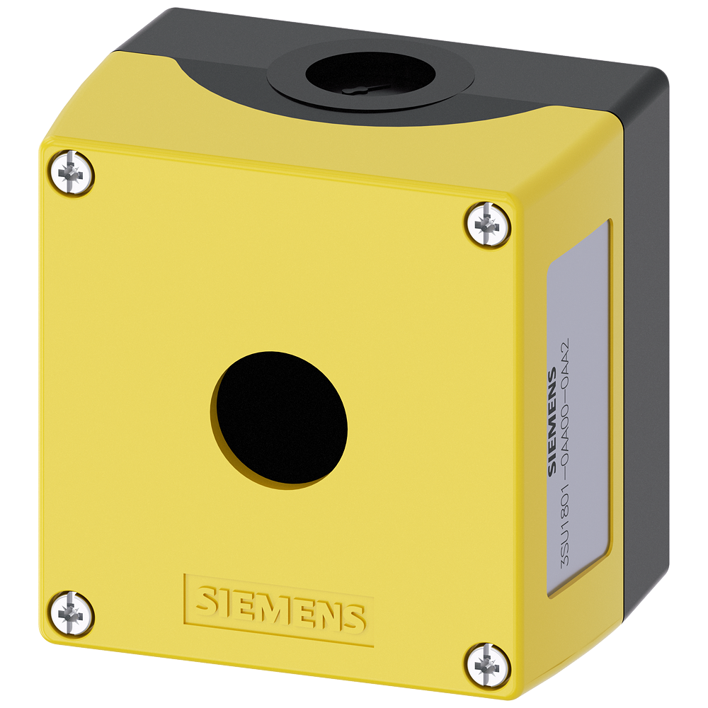 Enclosure for command devices, 22 mm, round, Enclosure material plastic, Enclosure top part yellow, 1 control point plastic, Control point in center, without equipment