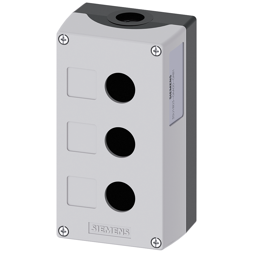 Enclosure for command devices, 22 mm, round, Enclosure material plastic, enclosure top part gray, 3 control points plastic, Recess for labels, without equipment