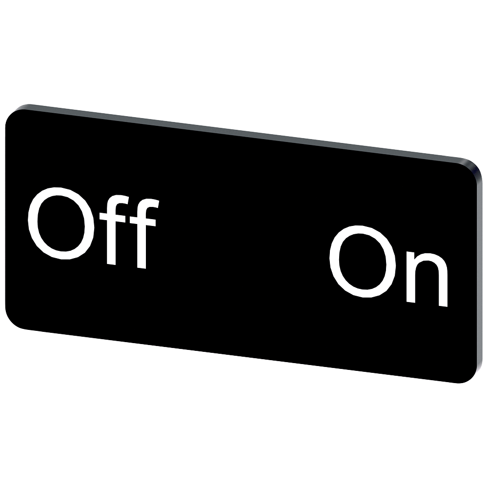 Labeling plate for snapping on or gluing to label holder, label size 12.5x27mm, black label, white font, with inscription: Off On