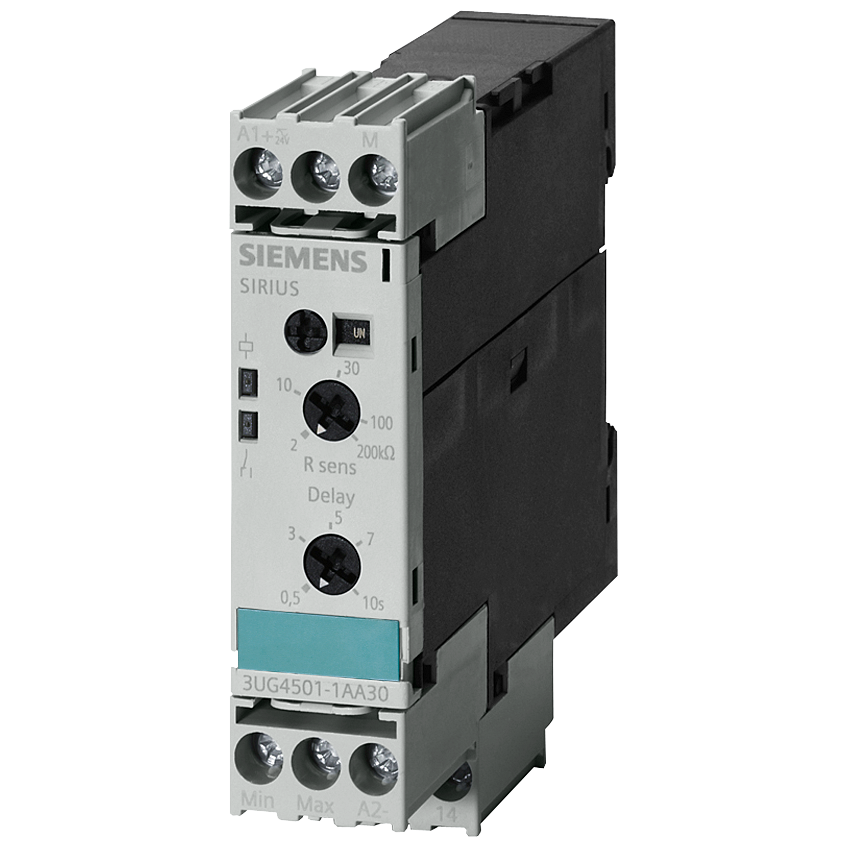 Analog monitoring relay Fill level monitoring Resistance monitoring from 2 to 200 kohm 0vershoot and undershoot 24 to 240 V AC/DC 50 to 60 Hz DC and AC 2-step or 1-step control Tripping delay 0.5 to 10 s 1 change-over contact screw terminal Successor product for 3UG3501