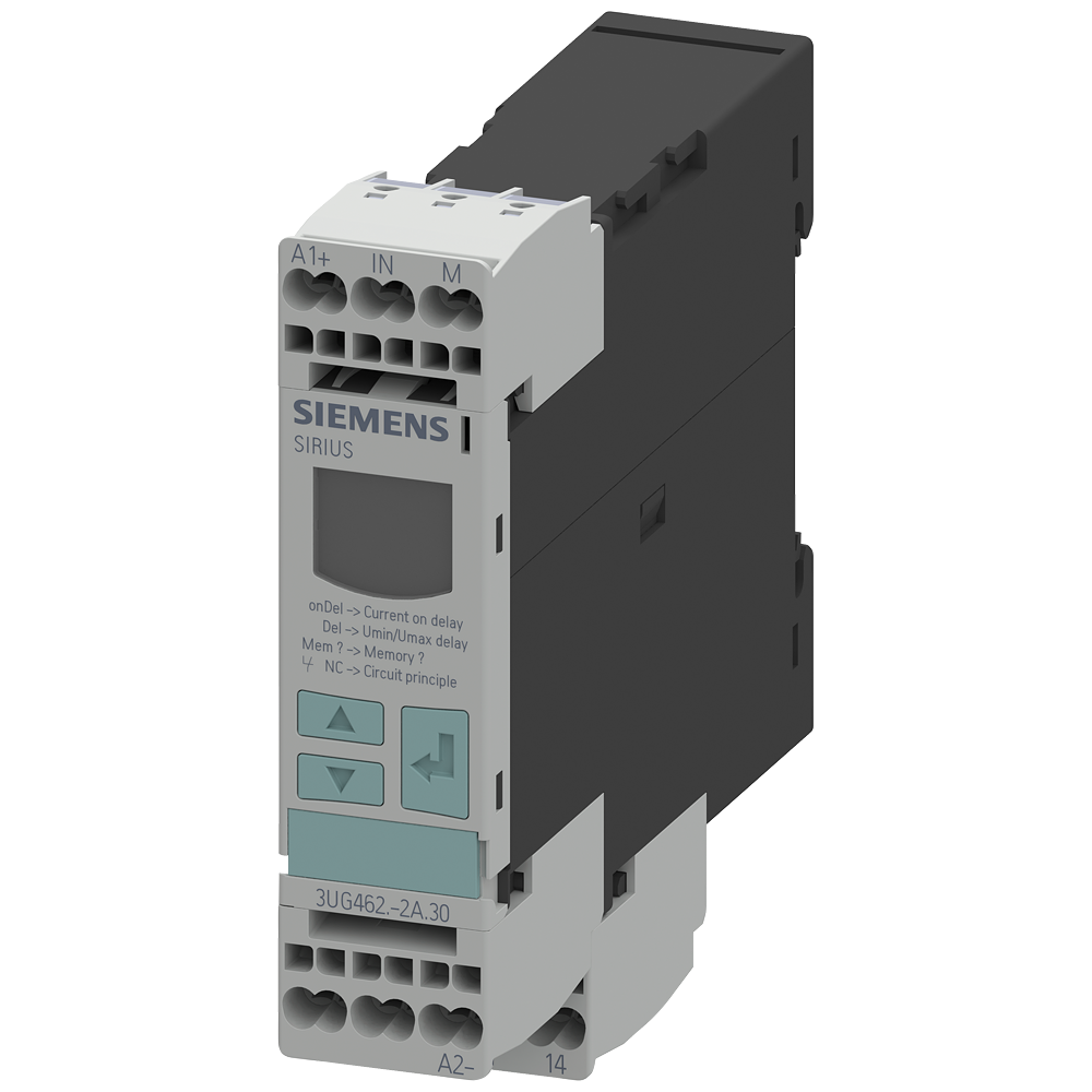 Digital monitoring relay Current monitoring, 22.5 mm from 0.05-10 A AC/DC 0vershoot and undershoot Supply voltage: 24 V AC/DC 50 to 60 Hz DC and AC without galvanic isolation to measuring circuit ON delay and noise pulses delay 0.1 to 20 s Hysteresis 0.01 to 5 A 1 change-over contact with or without fault buffer spring-type connection system