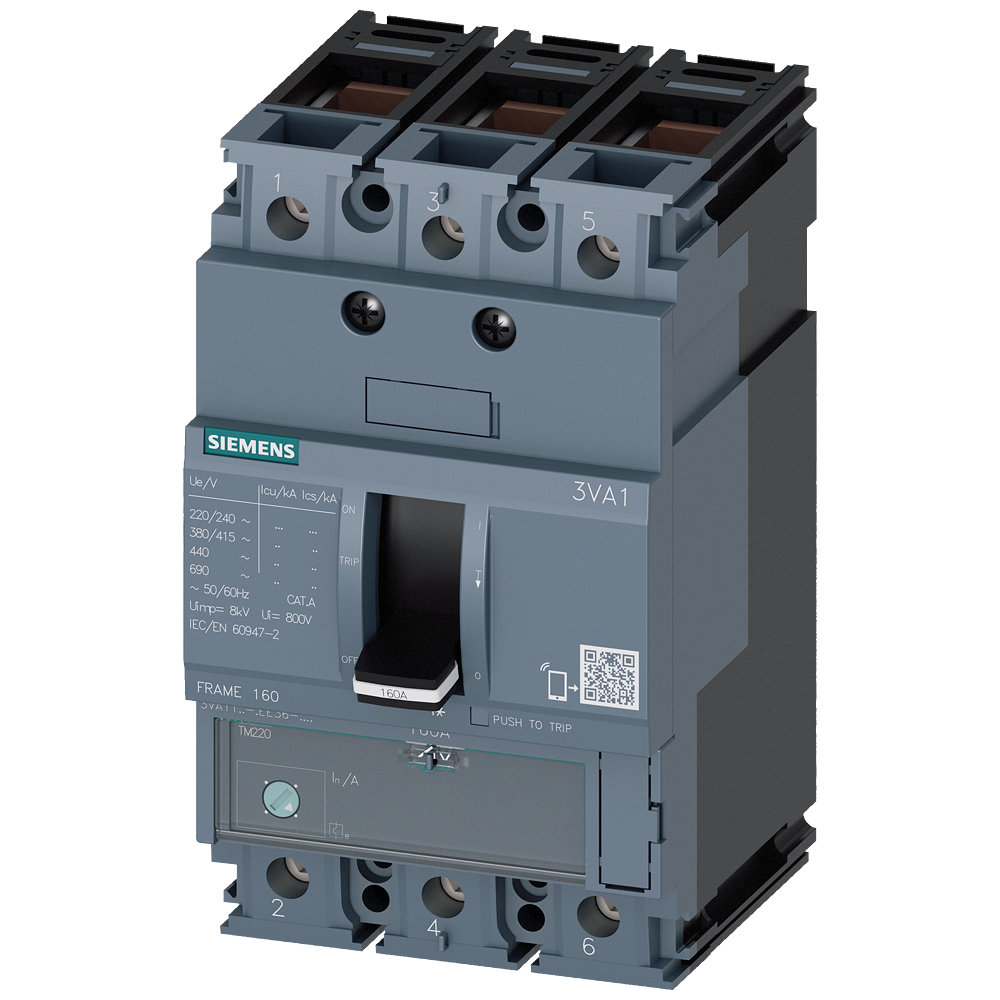 circuit breaker 3VA1 IEC Frame 160 breaking capacity class N Icu=25 kA @ 415 V 3-pole, line protection TM220, ATFM, In=32 A overload protection Ir=22 A...32 A short-circuit protection Ii=10 x In terminal connection