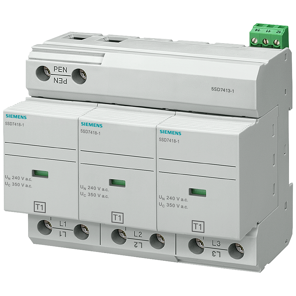 Lightning arresters, type 1 Requirement class B, UC 350V Pluggable protective modules 3-pole, 3+0 circuit for TNC systems with remote display