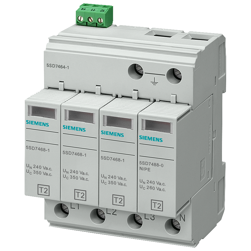 Surge arrester Type 2 Requirement class C, UC 350V Pluggable protective modules 4-pole, 3+1 circuit for TN-S and TT systems with remote display