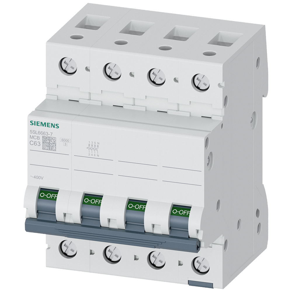 Miniature circuit breaker 400 V 6kA, 3+N-pole, C, 63 A