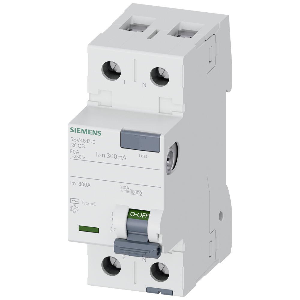 residual current operated circuit breaker, 2-pole, type AC, In: 80 A, 300 mA, Un AC: 230 V Use of these devices is not permitted in all countries. Observe national installation regulations!