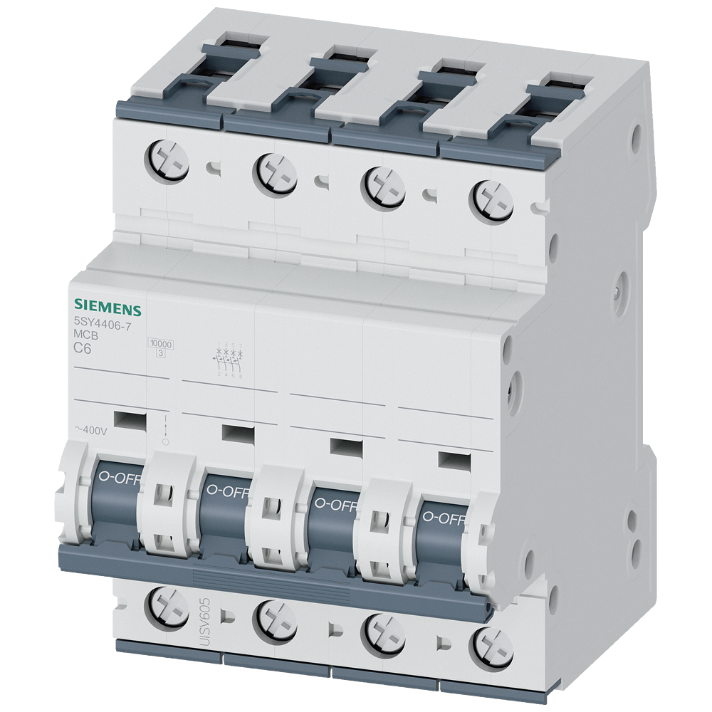 Miniature circuit breaker 400 V 10kA, 4-pole, C, 6 A, D=70 mm