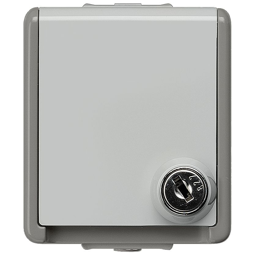 DELTA flaeche IP44, AP Dark gray/light gray SCHUKO socket outlet 10/16 A 250 V With screwless Connection terminals with spring flap, with lock 66x 75 mm