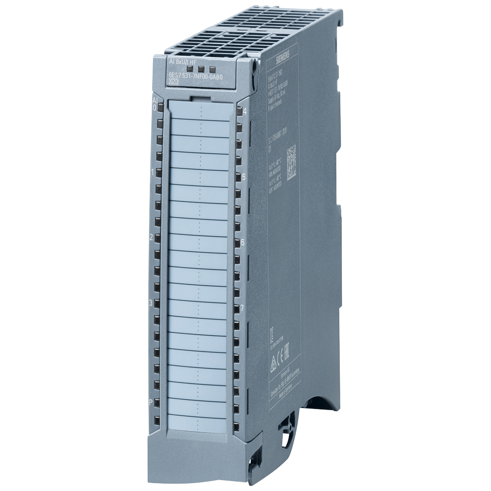 SIPLUS S7-1500 AI 8xU/I HF based on 6ES7531-7NF00-0AB0 with conformal coating, -40…+70 °C, start up -25 °C, analog input module 16-bit resolution, accuracy 0.1%, 8 channels in groups of 1, common mode voltage: 30 V AC/60 V DC, diagnostics; hardware interrupts; including infeed element, shielding bracket and shield terminal