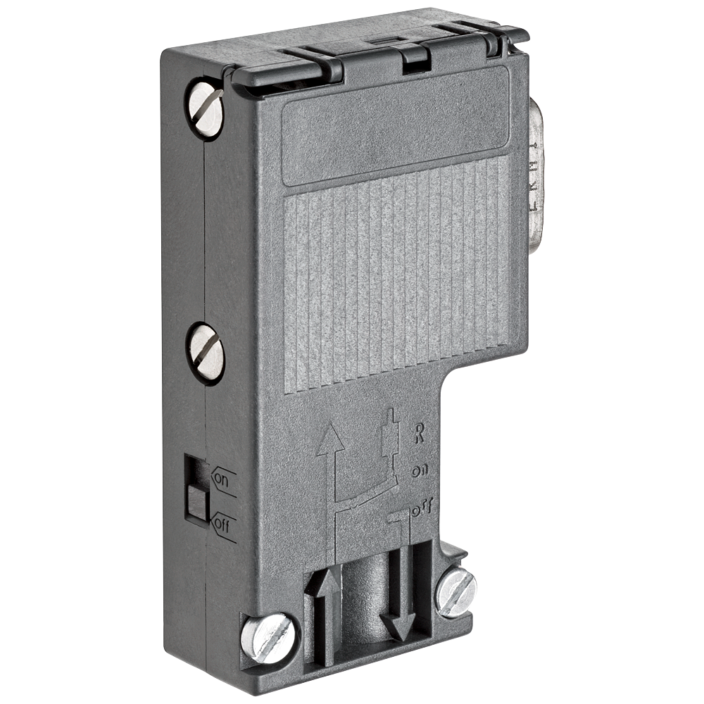 SIPLUS DP PROFIBUS plug with R - without PG - 90 degrees based on 6ES7972-0BA12-0XA0 with conformal coating, -25…+70 °C, connection plug for PROFIBUS up to 12 Mbps, 90° cable outlet, terminating resistor with isolating function, without PG socket