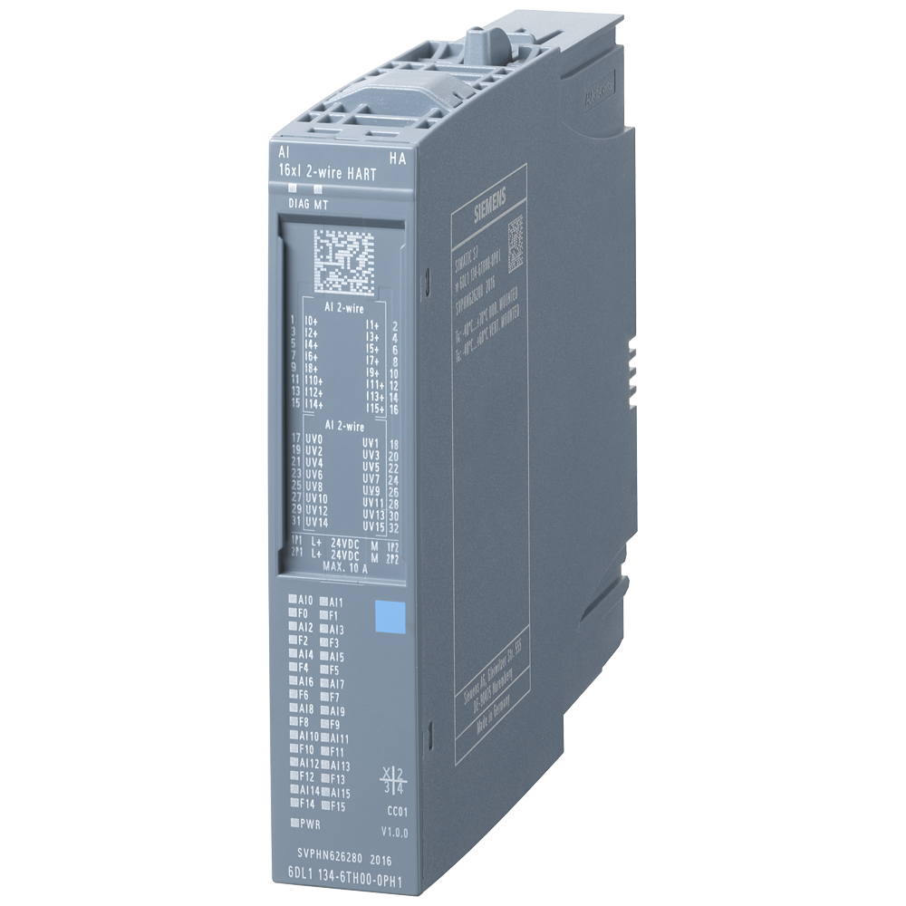 SIMATIC ET 200SP HA, analog HART input module, AI 16XI 2-wire HART HA, suitable for terminal block H1, M1, color code CC01, channel diagnostics, 16-bit, +/-0.1%,