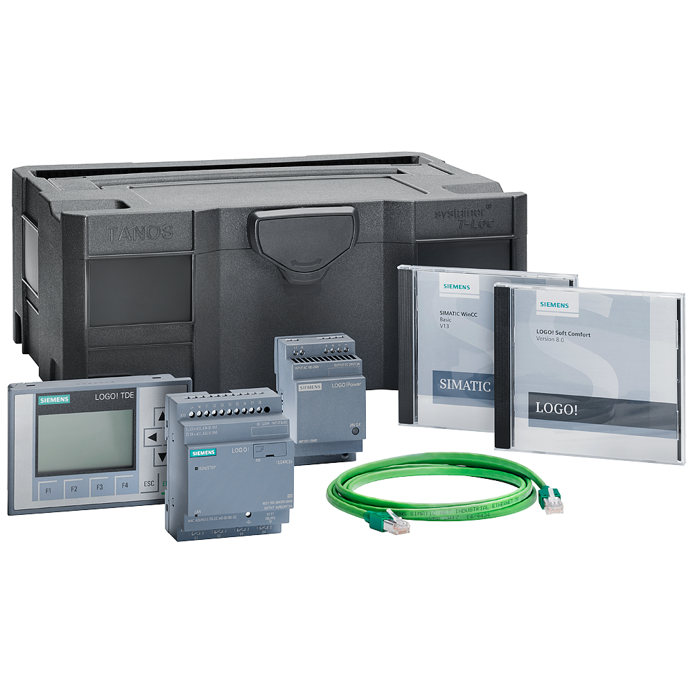LOGO! TD starter kit 12/24 V8.3 with LOGO! TD, LOGO! 12/24RCEo, LOGO! Soft Comfort, power supply, WinCC Basic, screwdriver in Systainer