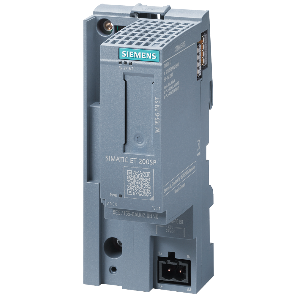 SIMATIC ET 200SP, PROFINET interface module IM 155-6 PN ST, max. 32 I/O modules, and 16 ET 200AL modules, multi hot swap, optional PN strain relief, PN security class 1 incl. server module (6ES7193-6PA00-0AA0)
