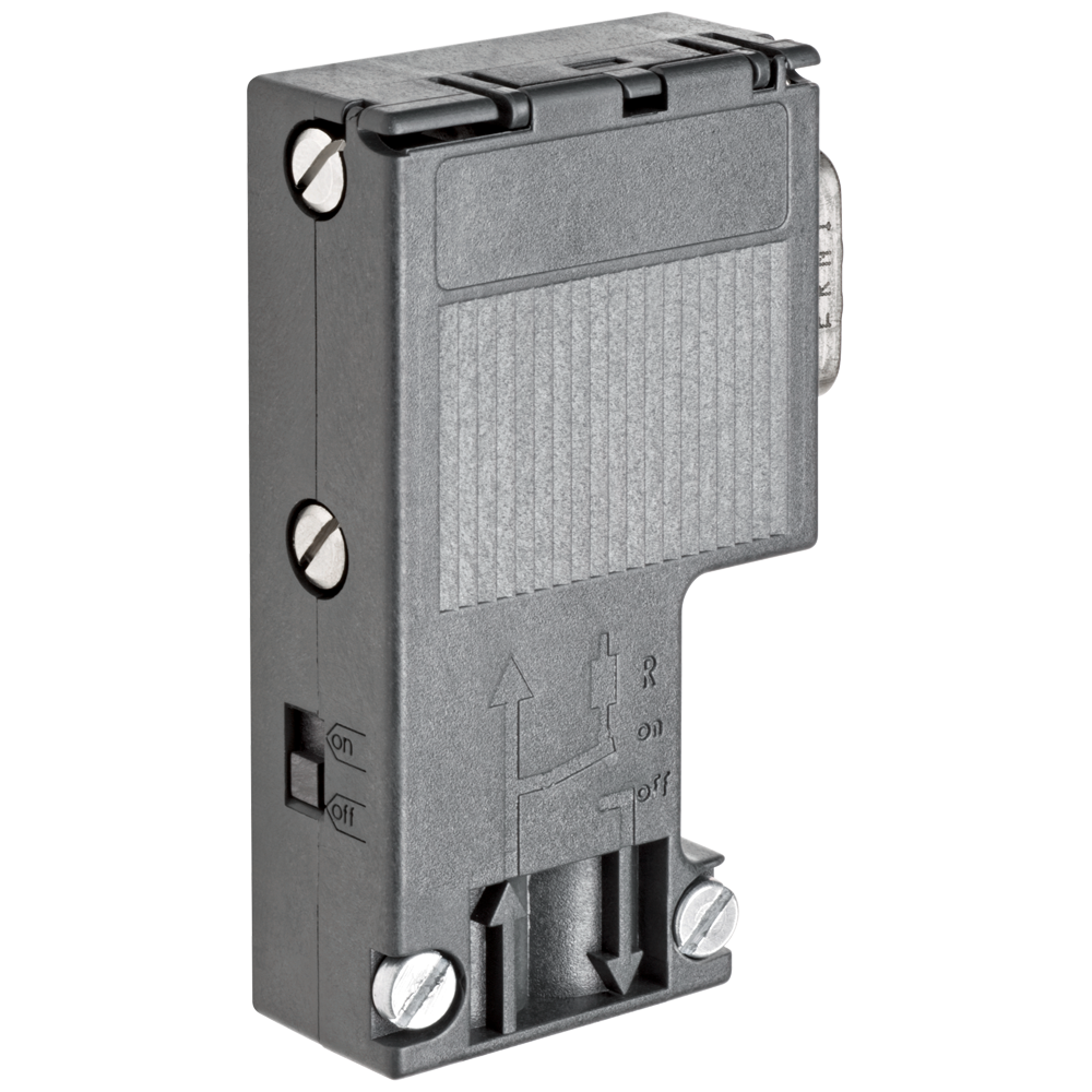 SIMATIC DP, Connection plug for PROFIBUS up to 12 Mbit/s 90° cable outlet, 15.8x 64x 35.6 mm (WxHxD), terminating resistor with isolating function, without PG socket