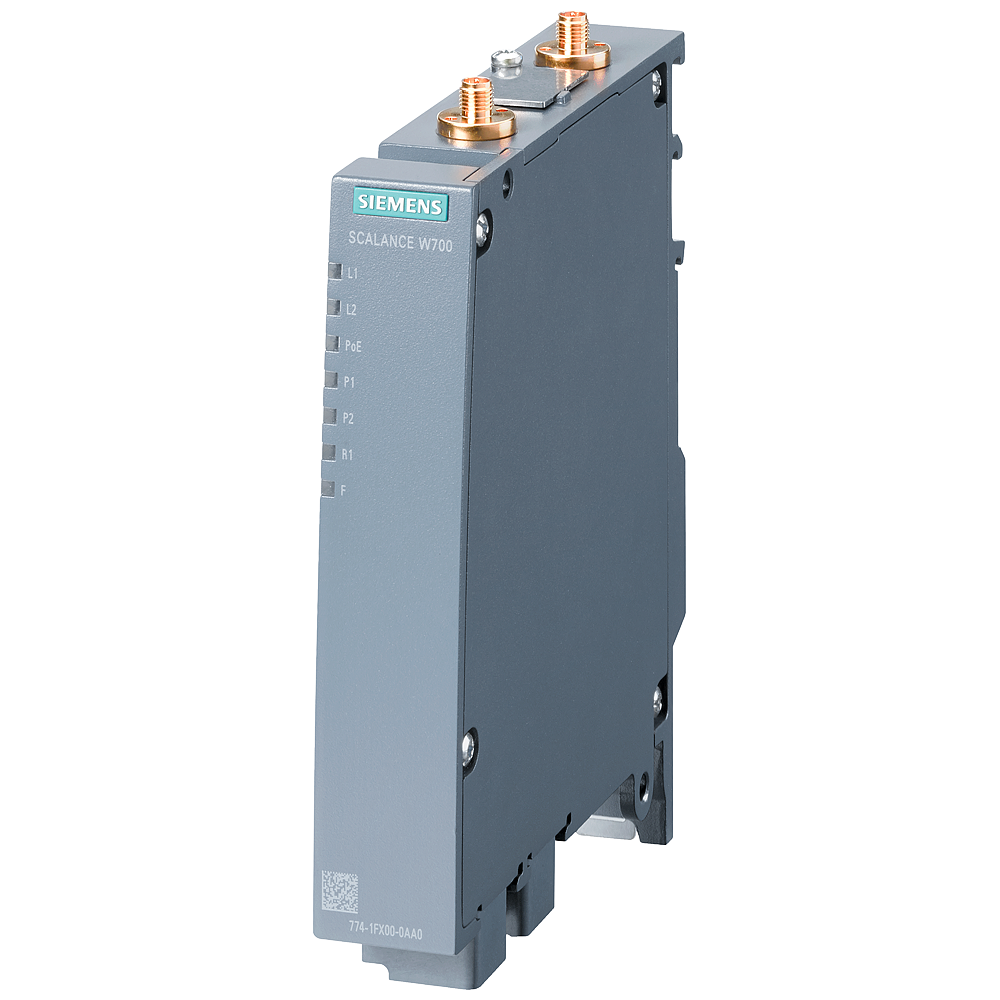 IWLAN Access Point, SCALANCE W774-1 RJ45, 1 radio, 2 R-SMA antenna port, iFeatures support via KEY-PLUG, IEEE 802.11a/b/g/h/n, 2.4/5GHz, gross data rate 300 Mbit/s, 2x RJ45 max. 100 Mbit/s, PoE integrated 2-port switch, redundant 24 V DC, joint block, IP30, -20... 60 °C, plug slot WPA2/802.11i/e, observe national approvals! CERT ID: MSN-W1-RJ-E2, scope of delivery: Manuals on CD-ROM, German/English, 1x joint block; for operation outside of USA/Israel .