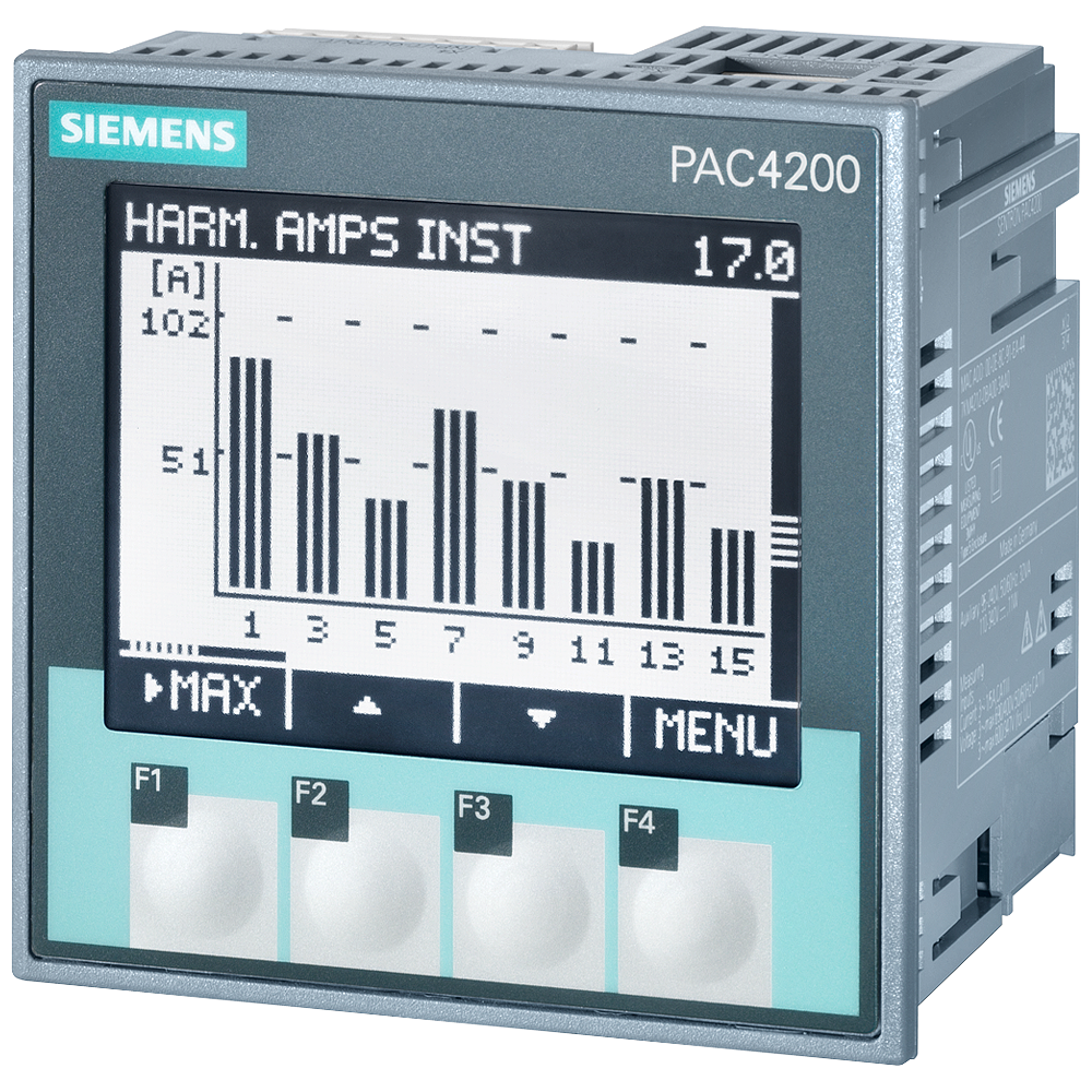 SENTRON, measuring device, 7KM PAC4200, LCD, L-L: 500 V, L-N: 289 V, 5 A, 3-phase, Modbus TCP, optional Modbus RTU / PROFINET / PROFIBUS / DI/DO, apparent/active/reactive energy / cos phi, harmonics: 2.-64., THD, class 0.2 acc. to IEC61557-12 or cl. 0.2S acc. to IEC62053-22, ext-low volt. pwr sup. unit DC, screw terminals